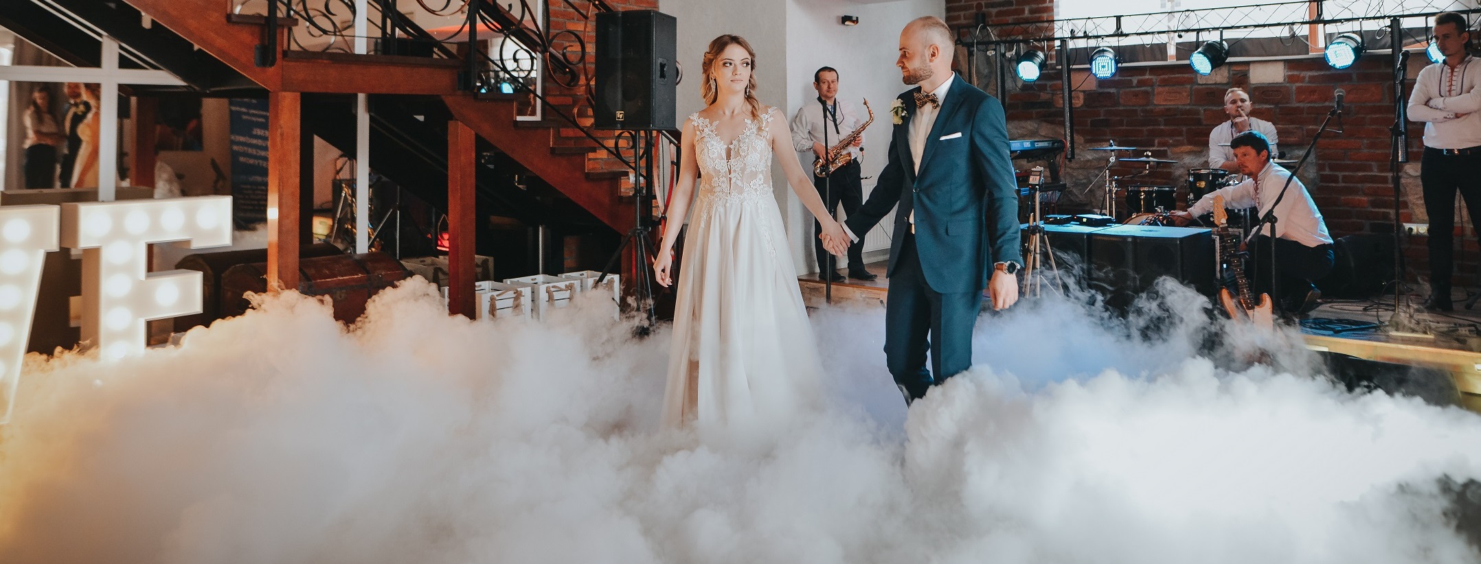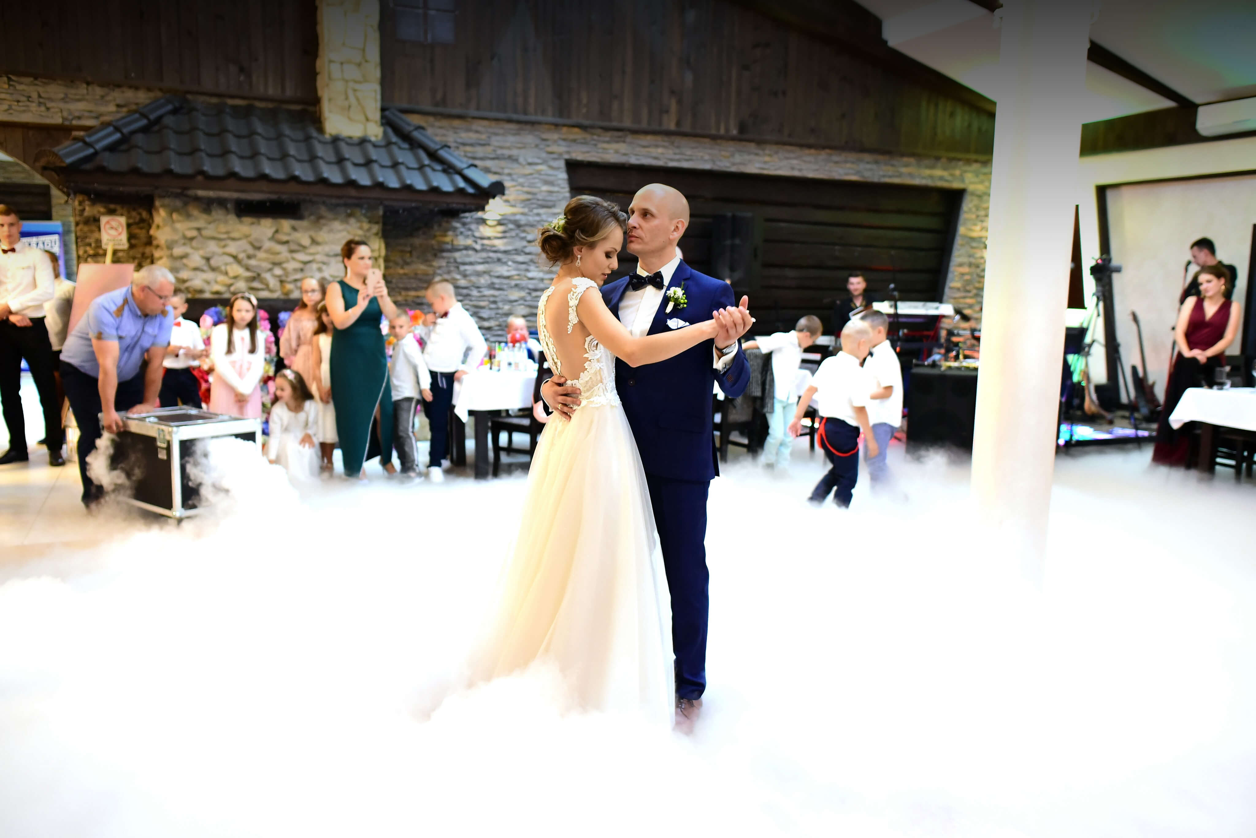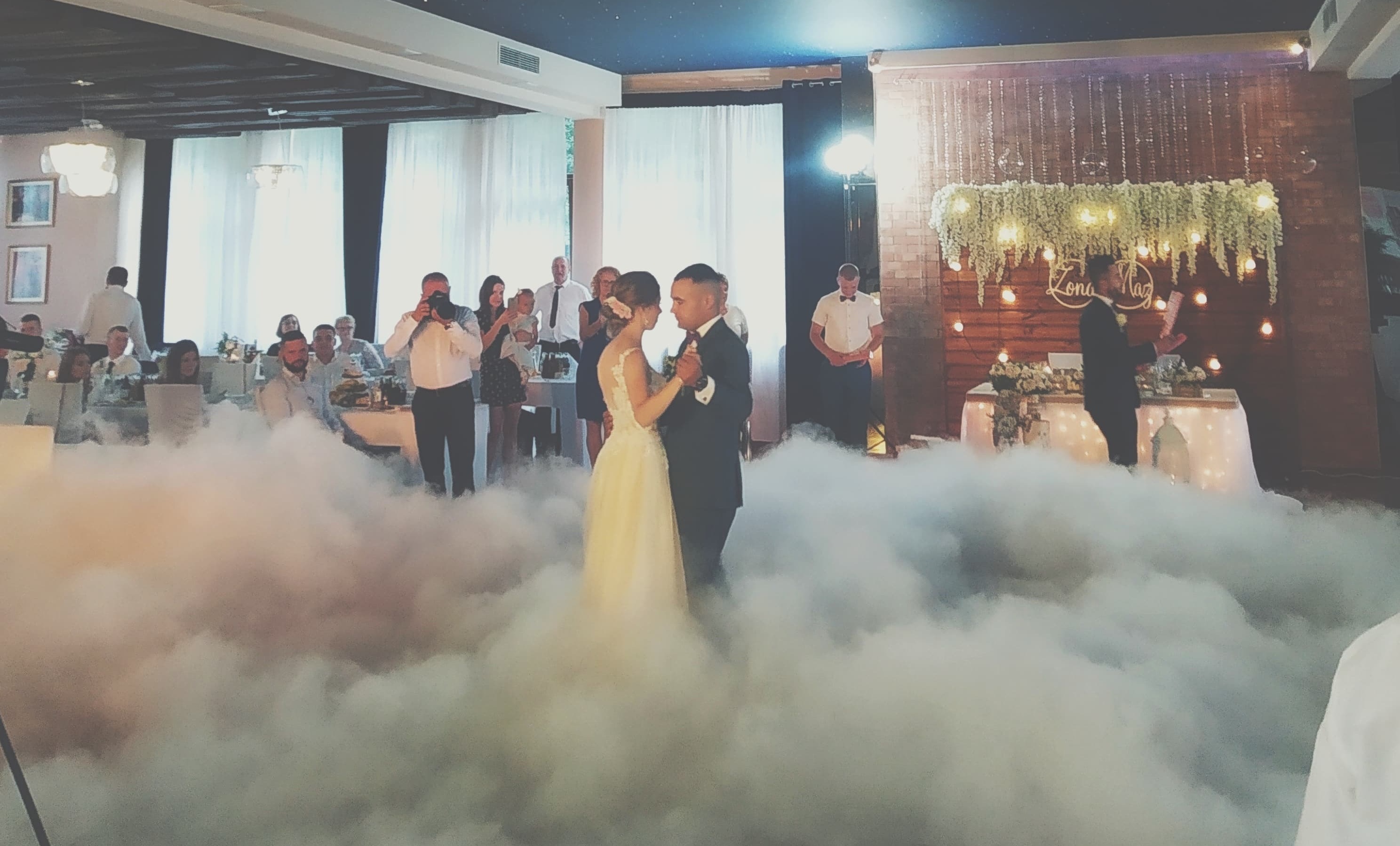 Taniec w chmurach jest świetną dekoracją sali, który nie tylko tworzy niesamowitą atmosferę i wrażenie na gościach, ale również pięknie wygląda na zdjęciach i filmach z wesela. Ciężki dym pozwala również na ukrycie drobnych potknięć, które mogą przydarzyć się Młodym w wyniku stresu.