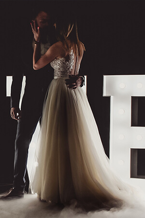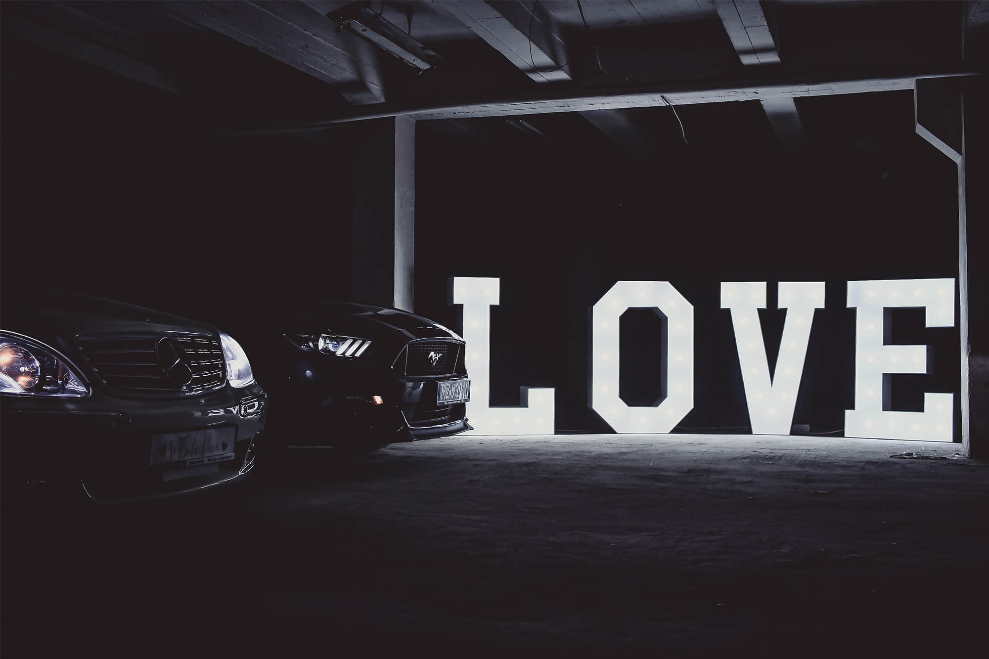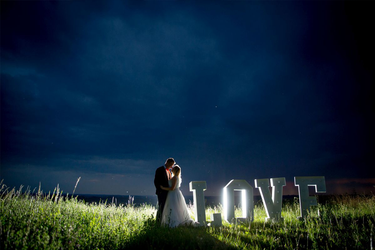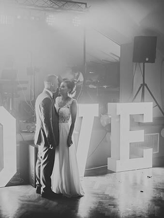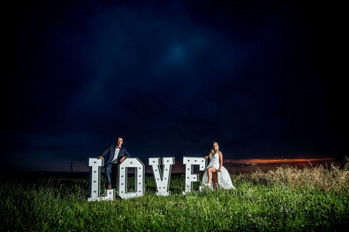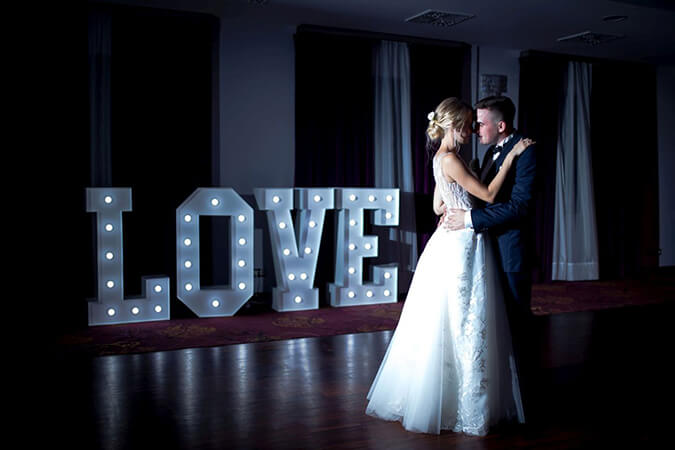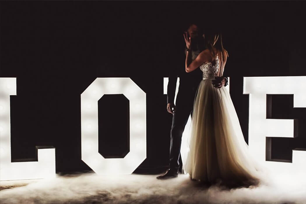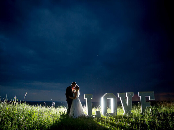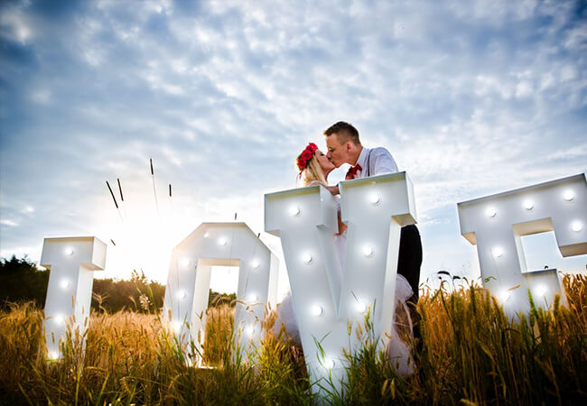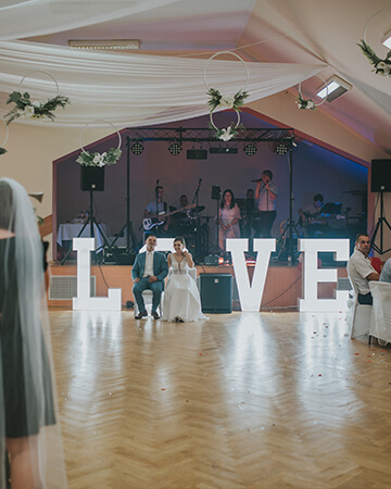 | Piękny napis w kolorze białym o wysokości 120 cm i szerokości 400 cm po rozstawieniu, podświetlony żarówkami LED. |