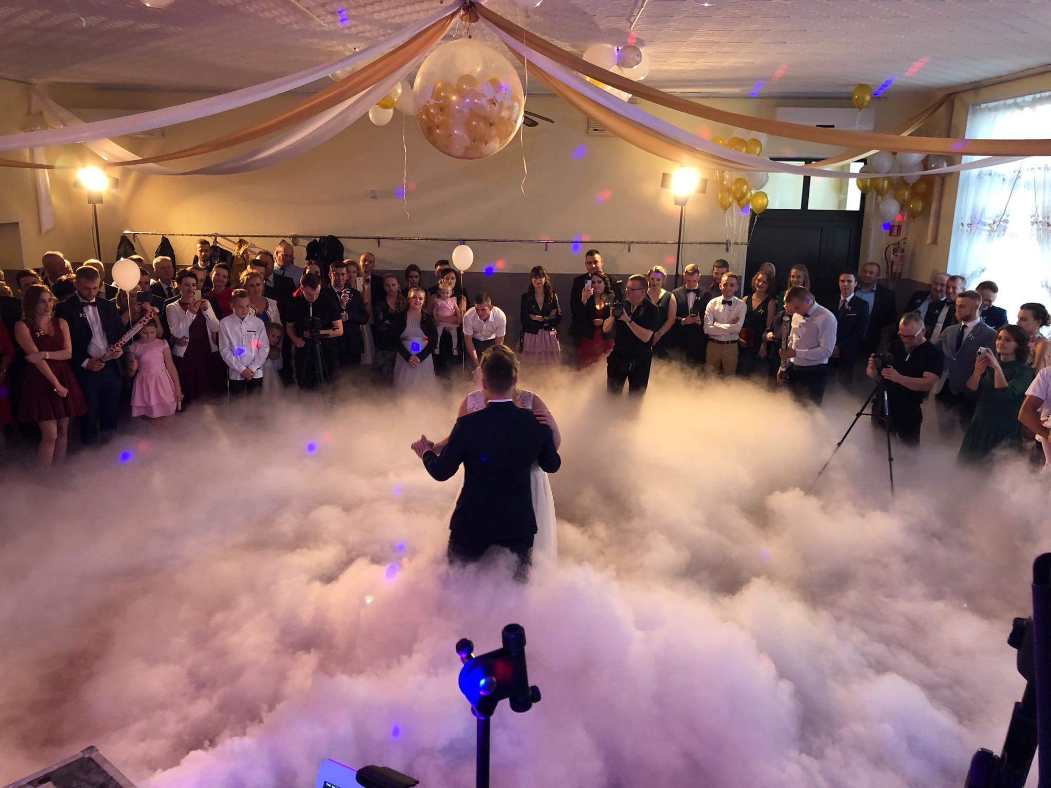 Taniec w chmurach jest świetną dekoracją sali, który nie tylko tworzy niesamowitą atmosferę i wrażenie na gościach, ale również pięknie wygląda na zdjęciach i filmach z wesela. Ciężki dym pozwala również na ukrycie drobnych potknięć, które mogą przydarzyć się Młodym w wyniku stresu.